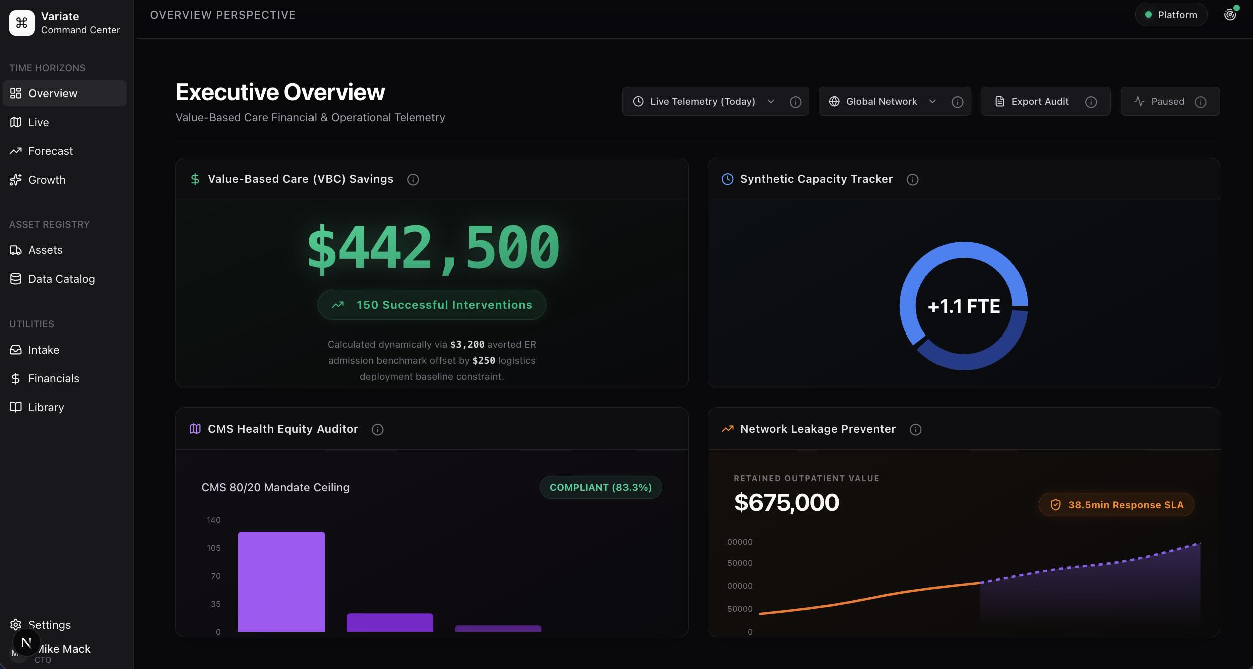 We saw brilliant clinicians burning out on the road, and hospitals losing millions to operational bottlenecks. We built Variate Health because we knew that with the right geospatial intelligence, healthcare networks could finally scale care to the home safely, efficiently, and profitably.